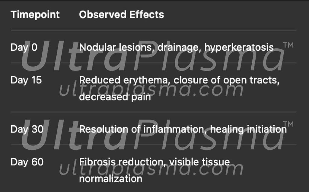 The integration of gas-assisted biointervention with precision engineering may signal a transformative step in HS management, potentially reducing the dependency on systemic pharmacologics, minimizing surgical interventions, and improving patient quality of life. Future studies should focus on long-term efficacy, combination protocols, and the role of UltraPlasma™ in preventative care for early-stage HS.